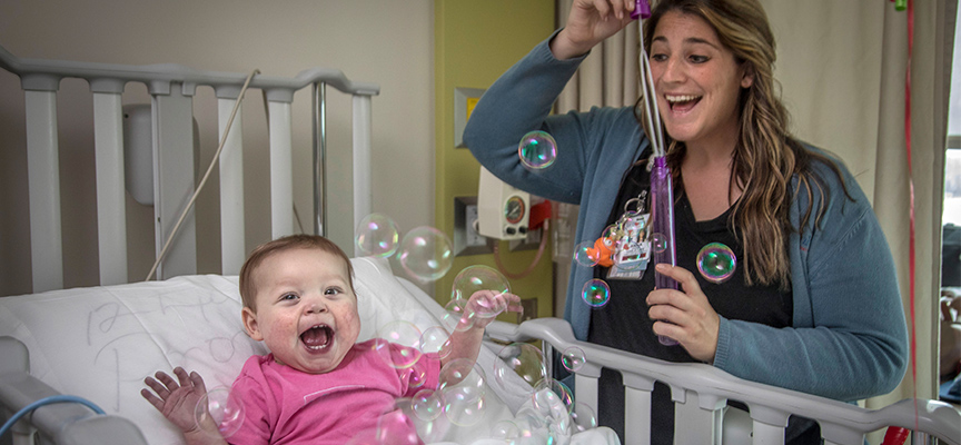 Our child life internship program is a 6-month, paid internship opportunity that will give students practical, intensive experiences in the child life profession. Under the guidance of Certified Child Life Specialists, interns participate in the development and implementation of therapeutic, educational and recreational activities for patients and their families. Interns will be given exposure in a variety of settings to promote optimal growth and development as they transition from student to professional. This is accomplished through exposure to inpatient, outpatient, and critical care units as the student makes the transition from building foundational skills to practicing these skills independently. Additionally, with rolling start dates, our goal is for there to be an added layer of peer-to-peer student support and opportunities for connection with other interns throughout the internship experience.